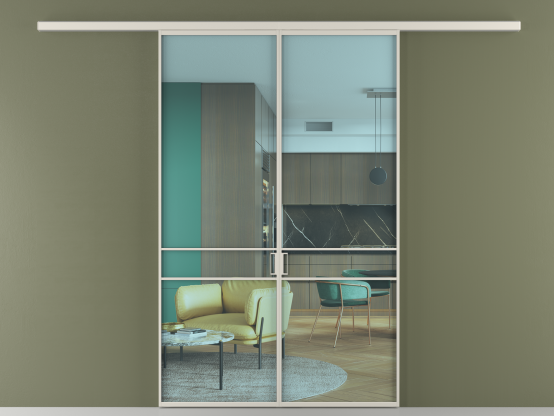Во всех алюминиевых перегородках, независимо от типа установки, используется компланарный раздвижной механизм, благодаря которому декоративная крышка и полотно находятся в одной плоскости.
